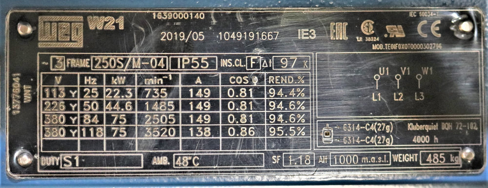 ATLAS COPCO - 1639000140 - ELECTRIC MOTOR 22.3-75kW 113-380V 25-118Hz