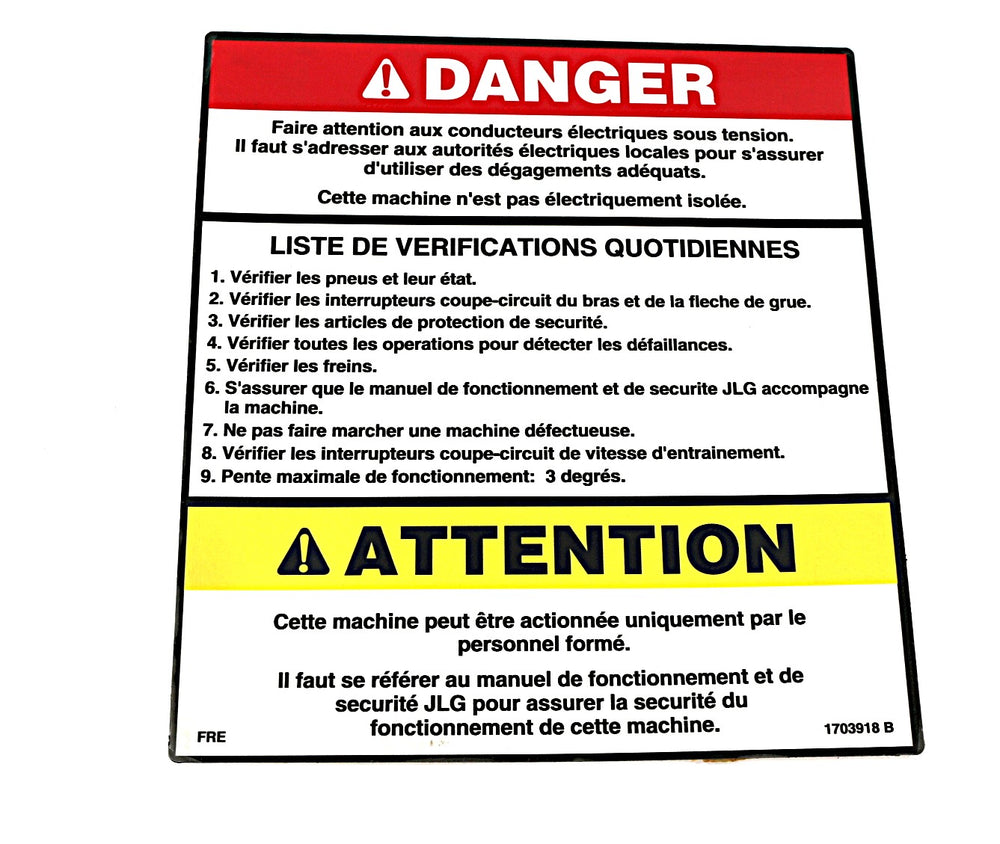 JLG - 1703918 - DECALWARNING MTB (FRE)