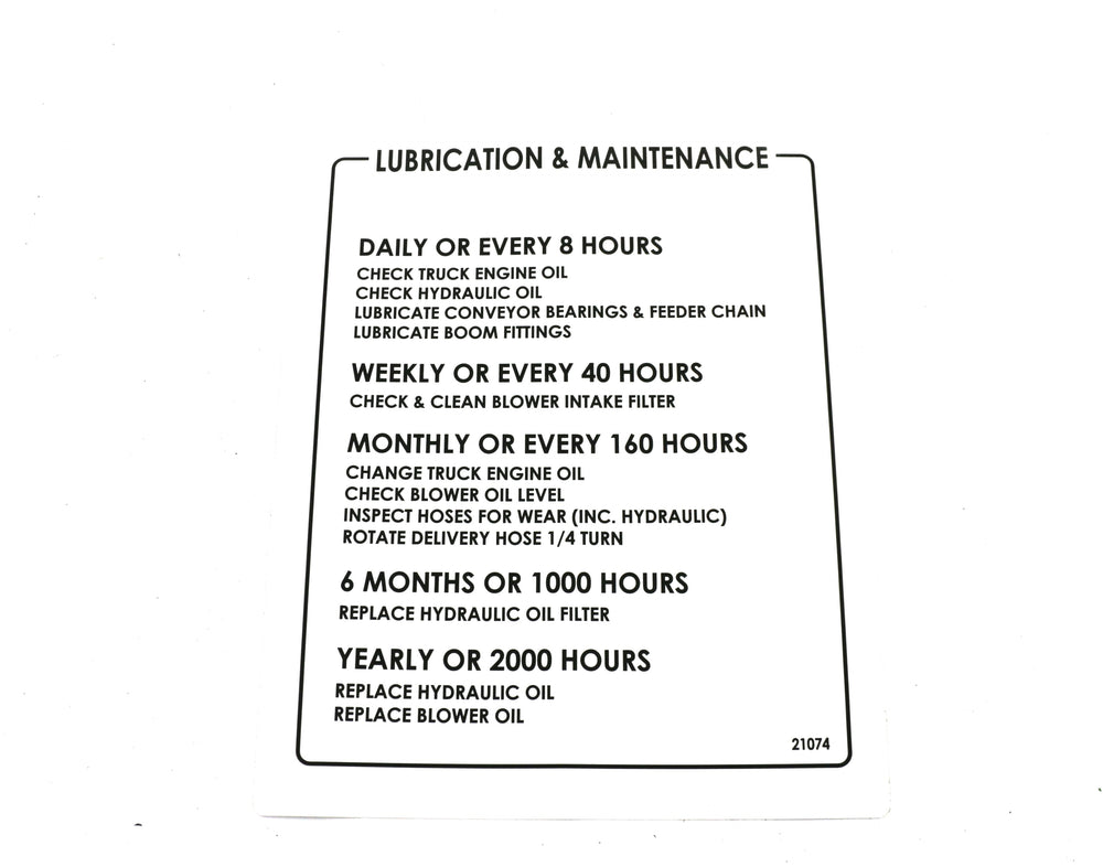 SCHWARZE - 21074 - DECAL LUBE AND MAINTENANCE DECAL